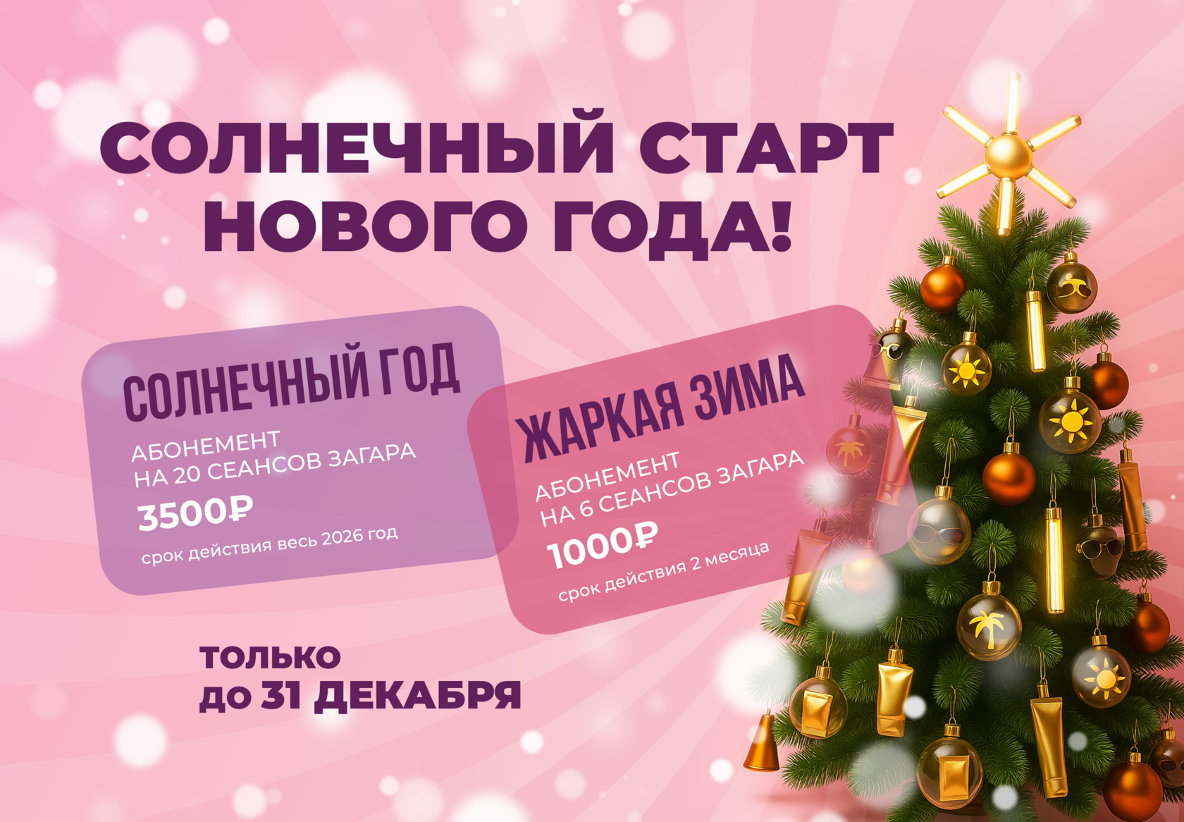 Сделайте солнечный подарок к Новому году себе или близким — абонементы доступны к покупке до 31 декабря в любой студии загара.